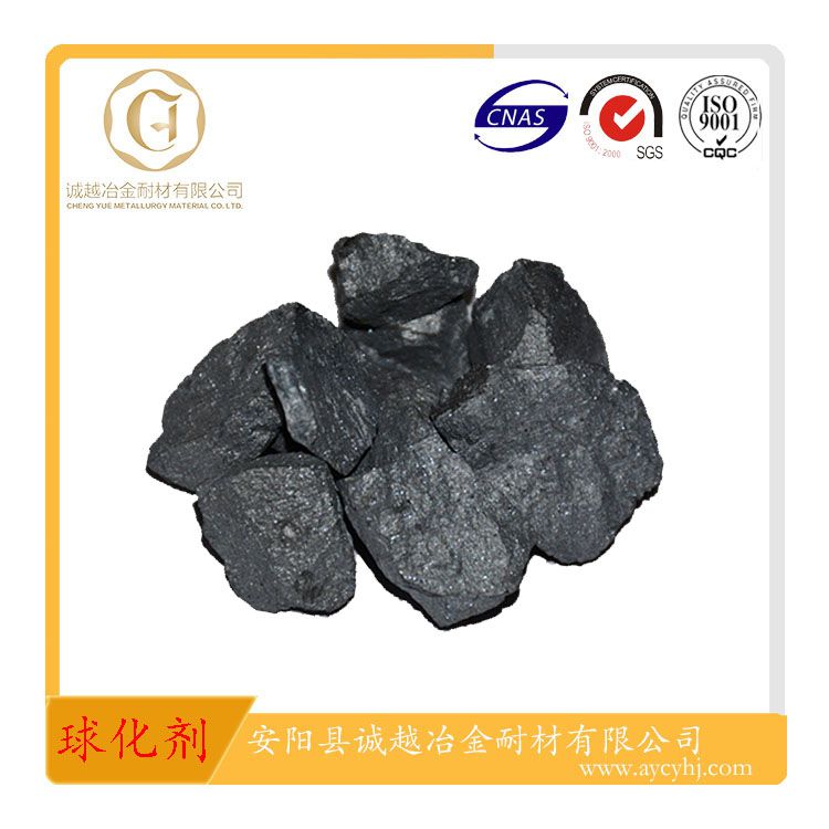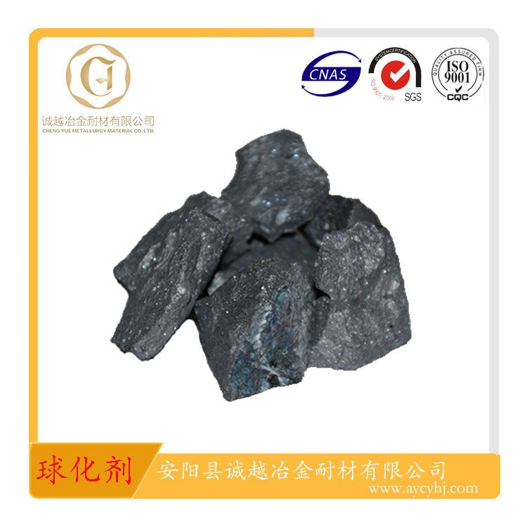 球化劑是使鑄鐵中的石墨呈球狀析出的鐵水添加劑。應(yīng)用于鑄鐵鑄造領(lǐng)域。含鎂量4%、5%、5.5%屬于低鎂球化劑,RE在1%-2%之間,多用于中頻爐熔煉、低硫鐵液的球化處理。它具有球化反應(yīng)和緩、球化元素易于充分吸收的優(yōu)點(diǎn)。 含鎂量6%、7%屬中鎂系列球化劑,多用于沖天爐、電爐雙聯(lián)熔煉,或中頻爐熔煉珠光體型鑄態(tài)球墨鑄鐵鑄件。根據(jù)鑄件壁厚和原鐵水含硫量,確定合適的球化劑加入量,適用范圍廣,球化處理工藝寬泛。 高鎂系列球化劑,適合沖天爐熔煉、含硫量0.06%-0.09%的鐵液,加入量在1.6%-2.0%之間。 低鋁球化劑使用于容易產(chǎn)生皮下氣孔缺陷的鑄件,以及對(duì)鐵液含鋁量有要求的鑄件。 純Ce、純La生產(chǎn)的球化劑,球化處理后鐵液純凈夾雜物少、石墨球圓整。釔基重稀土生產(chǎn)的球化劑適合于大斷面鑄件,延緩球化衰退、防止塊狀石墨。含Sb球化劑用于珠光體型球墨鑄鐵。 低硅球化劑適用于使用大量回爐料的鑄造工廠(chǎng);鎳鎂球化劑則用于高鎳奧氏體球墨鑄鐵。